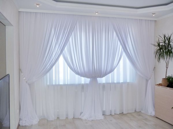 Когда выбирают тюль, обязательно обращают внимание на сочетаемость со шторами и назначение изделия. Иногда достаточно декоративного эффекта, без увеличения пространства. В большинстве ситуаций подойдёт лёгкая, практически невесомая тюль. Ткань выпускается не только из натуральных материалов, встречается и синтетическая. По внешнему виду трудно определить, где какая именно, поэтому обращайте внимание на описание производителя. Сочетаемость синтетики и натурального материала позволяет добиться интересных визуальных эффектов, создав в помещении неповторимый антураж и интерьер.