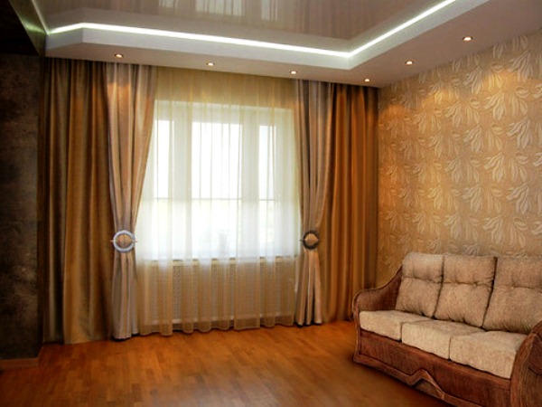 В любой квартире гостиная является важнейшим помещением не только для приёма гостей, но и для ежедневного отдыха всей семьёй. Именно здесь каждый вечер у экрана телевизора собираются родные и близкие, празднуются дни рождения и другие важные семейные даты. Гостиная – это центр внимания, важнейший интерьер в квартире. Поэтому обязательно следует приложить немного усилий для создания эффектной, запоминающейся обстановки, обеспечивающей тепло и уют всем домочадцам. Главное – помещение должно выглядеть торжественно, не выбиваться из общего стиля оформления интерьера в доме. Подбирать шторы в гостиную рекомендуется после того, как все остальные элементы декора уже расположены на своих местах.